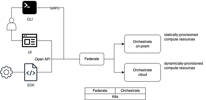 With this release, we introduce the third component, Federate, which unifies Orchestrate Clusters, providing seamless access of compute resources across on-prem clusters and cloud computing regions.