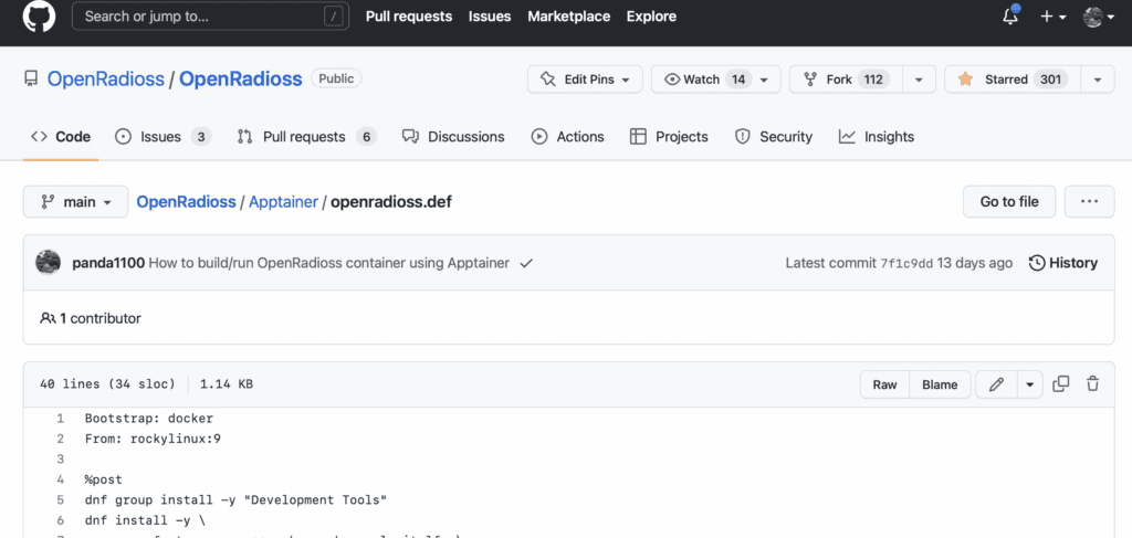 A definition file is like a set of blueprints for building a container. The OpenRadioss definition file sets up a base container and then pulls in the necessary tools and libraries, grabs the OpenRadioss source code from the main branch that is available on OpenRadioss GitHub repository, builds it, and sets the proper runtime environment.
