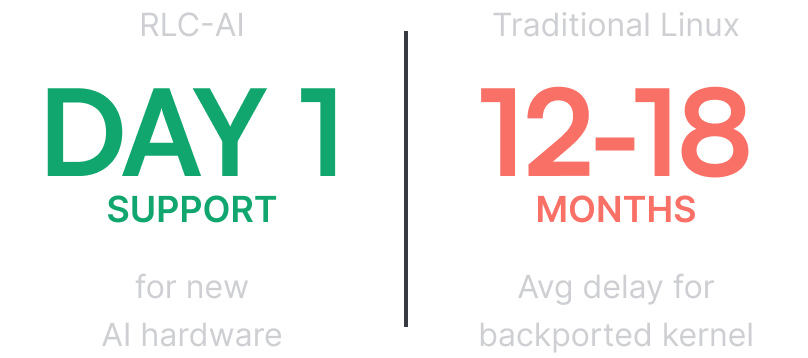 RLC-AI also offers advanced hardware support ahead of traditional enterprise Linux, with carefully validated kernel.org releases that balance performance and stability.