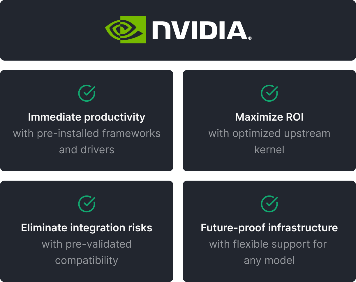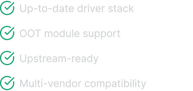 RLC-AI ships with the most up-to-date drivers for your modern AI hardware, eliminating incompatibility headaches and also includes both proprietary and out-of-tree modules.